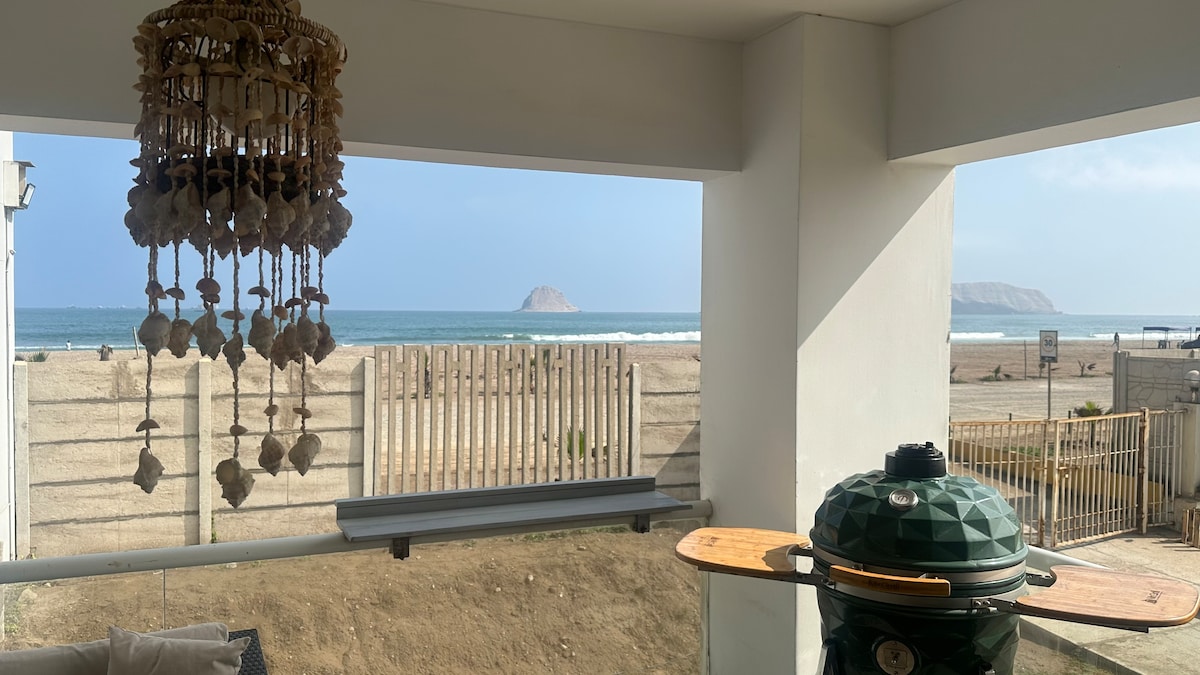 Amplia terraza con espectacular vista al mar desde todos los ambientes. En primera fila, bajas las escaleras y estás en la playa. Full equipado, vajilla, internet, 2 tv con cable, 5 camas, cochera cerrada. Uso exclusivo de todo el departamento. Te sentirás seguro y tranquilo. Cerca a parque, mercado, restaurants, bodegas. Hermoso malecón para agradables paseos en ambiente familiar. Petfriendly. Sólo lleva tus toallas y artículos personales! No tenemos parrilla pero puedes llevar la tuya.
