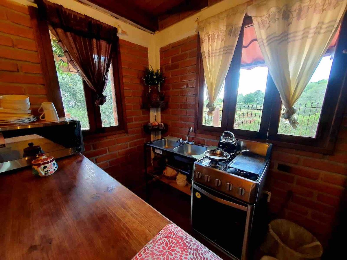 Villa campestre para 9 personas, construida en madera con 135 m² cómodos y acogedores, ideal para familia, amigos o pareja. Rodeada de ocotes, encinos y mil plantas de colores, ofrece 2 recámaras con ropa de cama premium, baño amplio, cocina completa, comedor con vista al bosque y asador Weber. Zona segura con Wifi, pet friendly (costo extra). Es obligatorio cumplir el reglamento para garantizar seguridad, armonía y la mejor experiencia para todos.