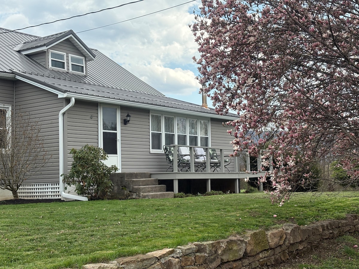 Relájate con toda la familia en este lugar tranquilo para hospedarte. Despiértate y disfruta de tu café en el porche mirando las montañas que rodean el lago Raystown. Esta casa de Piney Ridge se encuentra a solo 4-6 millas del lago, la universidad Juniata y el centro de la ciudad. Es la ubicación perfecta para aquellos que visitan el lago Raystown, el sistema de senderos Allegrippis y Juniata College. Habitación 1: 2 camas tamaño queen 1 armario grande Habitación 2: 2 camas queen No hay armario, pero hay mucho espacio para tus maletas