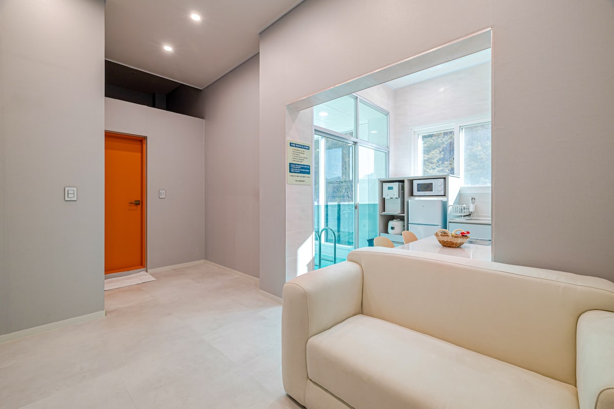Es un edificio privado ubicado en la colina Geumbyeongsan detrás de Kim Yu-jeong Munhak Village, donde un equipo puede disfrutar plenamente del jardín y el alojamiento por día. Proporcionamos ropa de cama 100 % algodón y toallas hervidas llenas del aroma de la luz solar cada vez que te lavas. Es un alojamiento luminoso con buena luz solar a través de una gran ventana. Es un tipo de estudio con dos camas individuales una al lado de la otra, por lo que es básico para 2 adultos, y se puede proporcionar ropa de cama adicional para hasta 4 personas, y pueden entrar hasta 4 personas, incluidos los bebés. Es gratuito hasta 2 años (hasta 24 meses) y no se proporciona ropa de cama adicional si es gratuita. Se puede ver la montaña Samaksan y, si el clima es bueno, se puede ver la hermosa puesta de sol, llena de luz roja. Ofrecemos desayuno por una tarifa. (5000 wones/persona, 3000 wones para estudiantes de escuela primaria/persona, brunch para noches consecutivas, etc.) Si lo deseas, haz tu pedido con anticipación. No ofrecemos servicio de barbacoa. Nuestro alojamiento no tiene cocina, así que no puedes cocinar. Puedes utilizar el microondas y la cafetera.