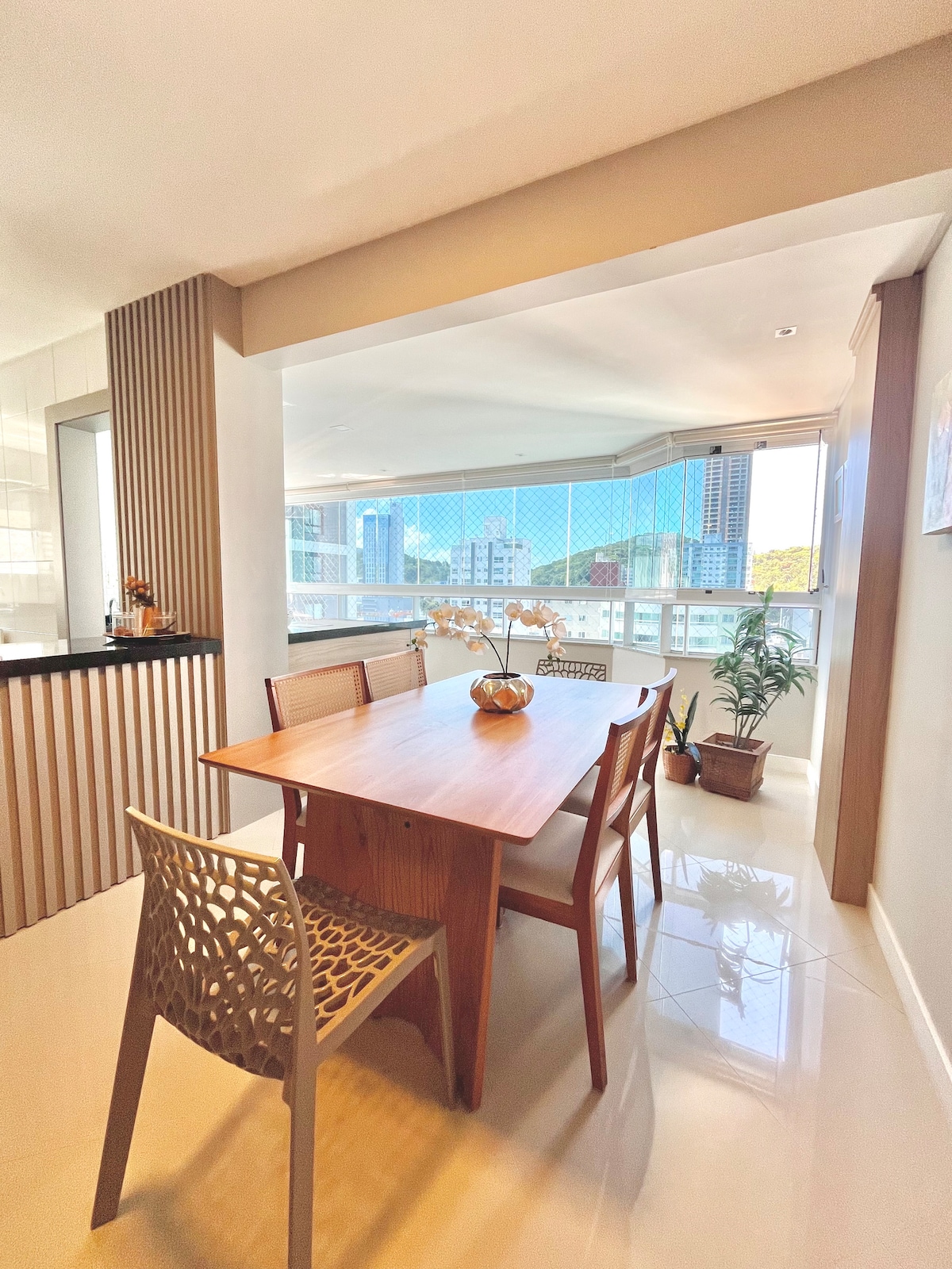Para ti solo lo mejor: DISFRUTE: alto estándar y vista panorámica del mar. INSPÍRESE: apartamento nuevo, soleado, climatizado y decoración minimalista. PERMÍTASE: a pocos metros de la playa y cerca de Praia Brava y el comercio local. DISFRUTE: cocina y lavandería completas, barbacoa y 3 garajes en el edificio. DESCANSE: 3 suites con aire acondicionado, blackout y cómodas camas. SEGURIDAD: portería 24h. WI-FI 120MB. HIGIENE Y LIMPIEZA: estándar recomendado por AIRBNB.