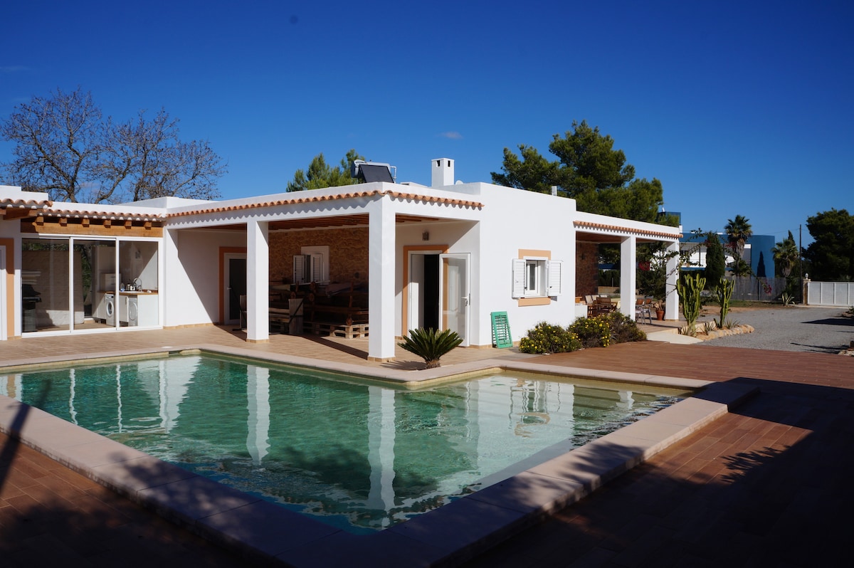 Marieta´s House es una acogedora casa de campo, luminosa y alegre, situada a 2 kms de Sant Antoni de Portmany, en un vecindario muy tranquilo. La casa cuenta con tres habitaciones, un baño, un salón, un comedor y una cocina totalmente equipada, hay wi-fi, y aire acondicionado. Lo mejor de la casa sin duda es la espléndida terraza con barbacoa, piscina, la mesa comedor, y las tumbonas.