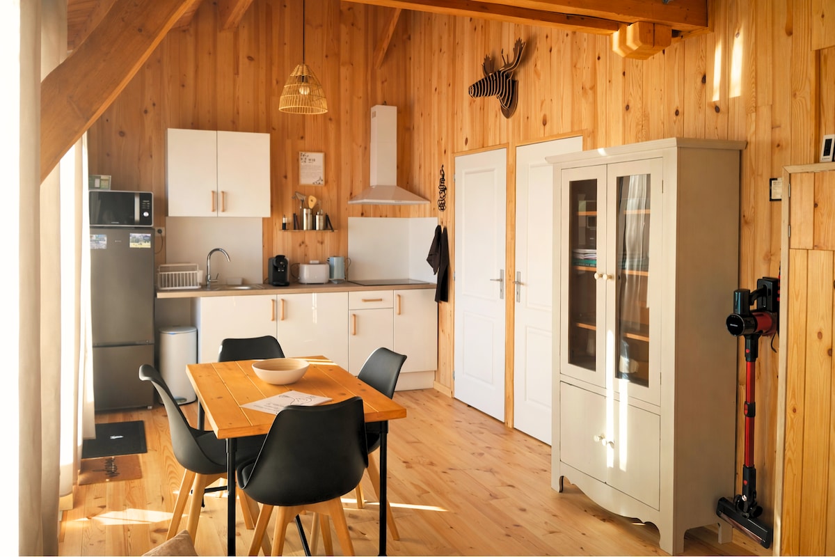 Cabaña sobre pilotes, en plena naturaleza, en el corazón de un bosque con vistas abiertas a los campos y las colinas. Sin ningún vecino en el horizonte, es un remanso de paz ideal para relajarse. Dos terrazas permiten disfrutar plenamente de la tranquilidad, el canto de los pájaros y las puestas de sol. Este nido para 2 le ofrece una cama doble, un baño con inodoro real, una cocina equipada, una zona de comedor y una estufa para calentar sus noches. Síganos en insta: lacabaneentrelescimes