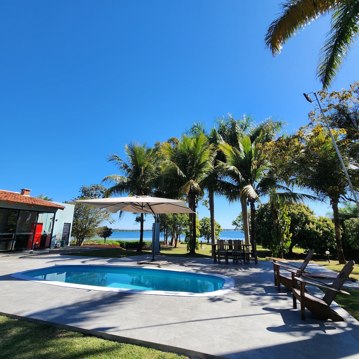 Relájate con toda la familia en este alojamiento tranquilo. Granja húmeda en Alvorada do Sul - Tres suites; - Aire acondicionado en todas las habitaciones; - 4 colchones individuales; - Baño social; - Espacio Gourmet con sala integrada; - Dos heladeras; - Microondas; - Licuadora; - Cocina de cinco hornillas; - Utensilios de cocina; - WI-FI; - Cámara de seguridad externa; - TV; - Piscina con playa e hidromasaje; - Acceso al río; - Muelle flotante para la pesca; - Espacio para vehículos;