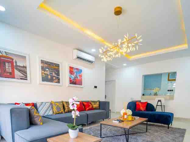 Welcome to your serene getaway, 2 mins away from the Coastal Road (15mins to VI). This is nestled in the heart of Abraham Adesanya close to several beaches offering the perfect blend of luxury and convenience, ideal for individuals, families or friends looking for a tranquil escape. Property Highlights: - Spacious accommodation with 2 king size beds. - Enjoy electricity with a reliable 10Kva inverter. - The complex features a 24-hour gym, a swimming pool and an indoor field for recreation.