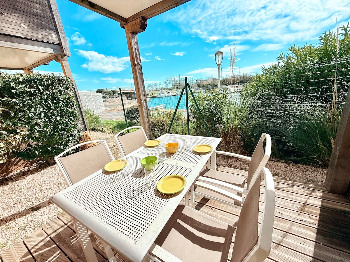 Relájese en este nuevo alojamiento junto al mar totalmente equipado con terraza frente a los barcos, aire acondicionado, wifi... Ubicado en el primer piso de una residencia tranquila y segura, orientada al sur. -A tu llegada te espera 1 caja de agua y monodosis de café. - En el baño también se proporcionará gel de ducha. - acceso directo al centro de la ciudad y a las tiendas, acceso a la petanca, jardines y muelles para pasear -Cerca de las playas, la isla del ocio.
