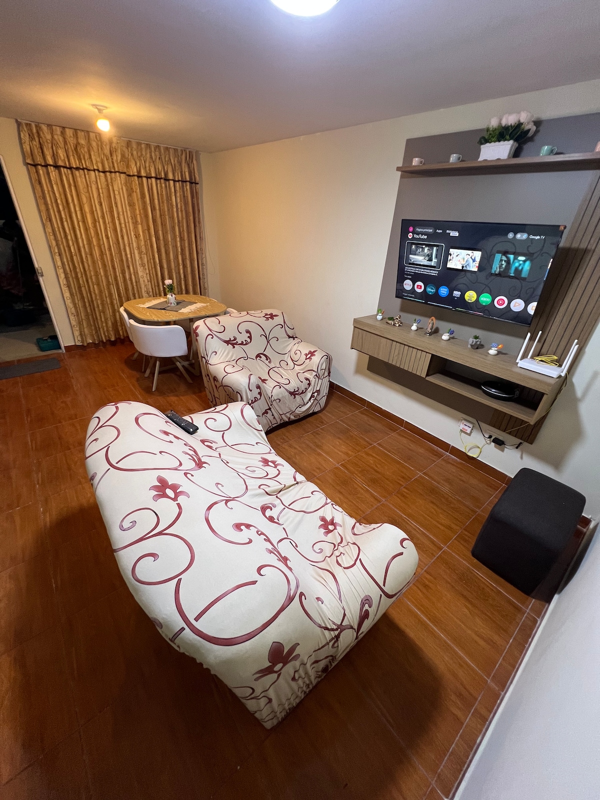 Un lugar relajante a 10 minutos del centro ubicado en zona residencial con seguridad, cuenta con 2 habitaciones cama 2 plazas y 2 camas plaza y media, baño con therma, sala comedor con cómodos y modernos muebles con sofá cama televisores de 44" y 36" zona de lavandería con lavadora, cochera privada dentro de instalaciones, cocina equipada, microondas, refrigeradora dos puertas olla arrocera licuadora y menaje Parrilla, zona de terraza / wifi Ideal para 04 personas sujeto a variación del cliente.