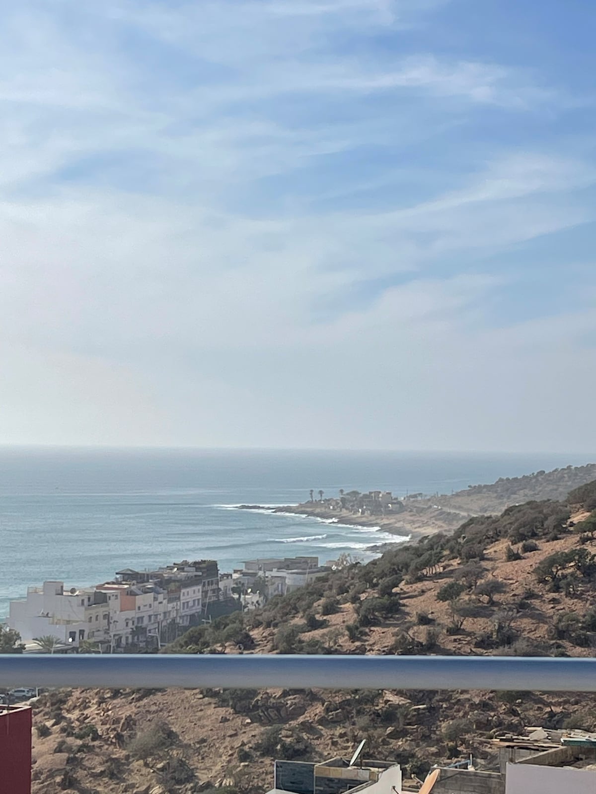 En una humilde calle encaramada en la encantadora ciudad de surf de Tamraght, encontrarás nuestra casa. Nuestras habitaciones son luminosas y ventiladas, con cada detalle cuidadosamente seleccionado y amorosamente organizado. Desde nuestras espaciosas azoteas, tienes una amplia vista del mar, de toda la encantadora ciudad y de las montañas. Un panorama completo de 360 grados. Perfecto para practicar yoga, ver las olas y descansar. A 5-10 minutos a pie de tiendas, restaurantes y a 15 minutos de la playa. Podemos preparar comidas y organizar experiencias. DESAYUNO (con vistas) INCLUIDO.