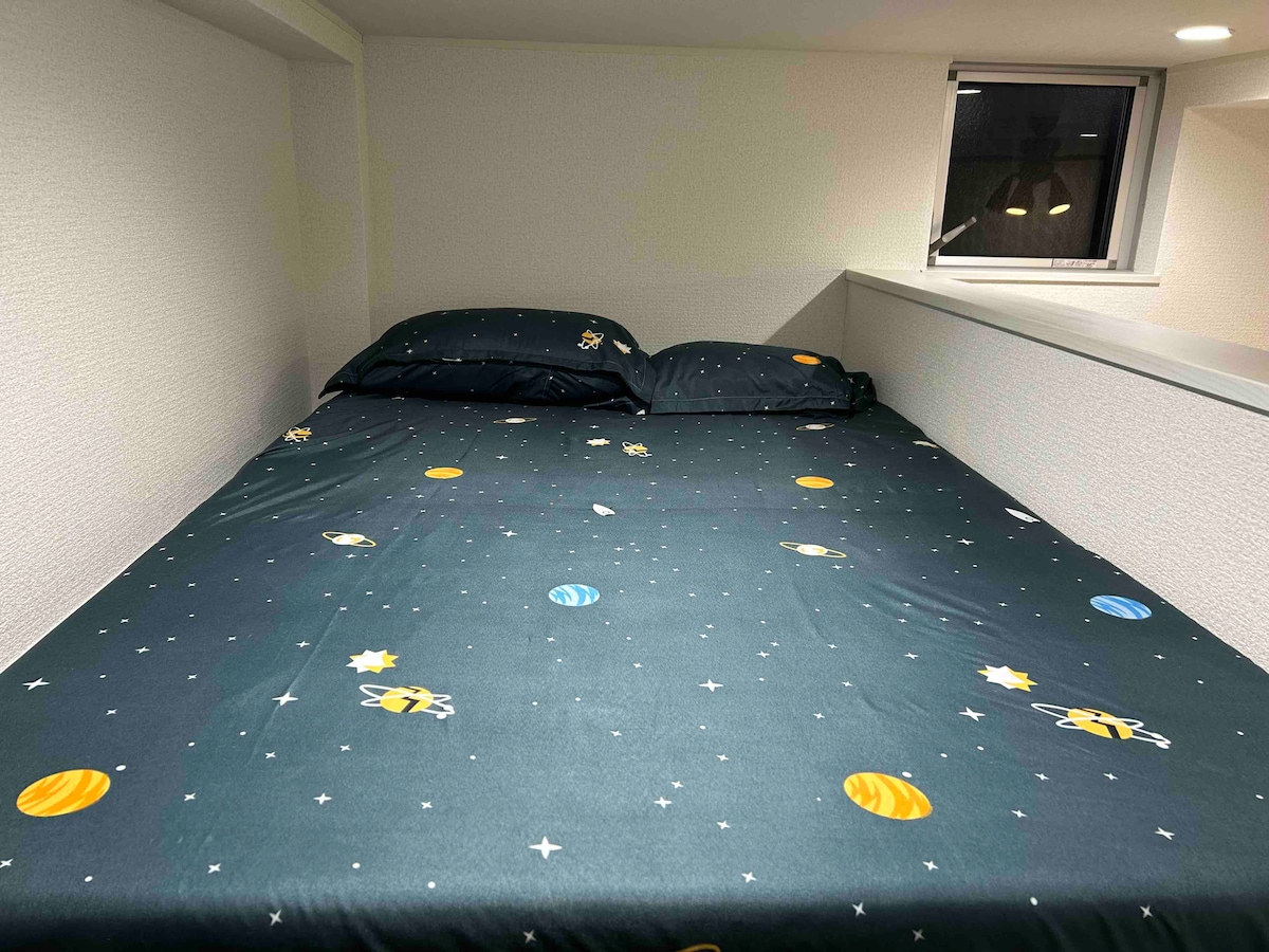 Mimihausu Makuhari está situado entre Narita y Tokio, a 1 minuto de la estación de Keisei Makuhari y a 4 minutos de la estación de JR Makuhari, por lo que goza de una ubicación muy conveniente. También está a unos 5 minutos en taxi de la estación de Kaihinmakuhari, donde llega el autobús de enlace con el aeropuerto de Narita. En los alrededores se encuentran el gran supermercado Ito-Yokado, el centro comercial más grande de Japón y Makuhari Seaside Park, que alberga un jardín japonés. Desde aquí es muy fácil llegar a Makuhari Messe y a Tokyo Disneyland. También hay dos bicicletas disponibles para que los huéspedes paseen por Makuhari. Puede utilizarlas libremente durante su estancia. (Para evitar robos, asegúrese de cerrar con llave) Además, la habitación cuenta con una cama queen y un kotatsu (en verano, una mesa de comedor) típico de Japón, para que pueda sentarse en el sofá bajo y ver la televisión o comer con total comodidad. También es posible acercar el kotatsu y colocar un futón para dormir, por lo que pueden alojarse hasta 3 personas. (Ten en cuenta que se puede quedar bastante estrecho si hay mucho equipaje) Podrá disfrutar de una estancia cómoda mientras experimenta el kotatsu japonés (o el chabudai en verano).