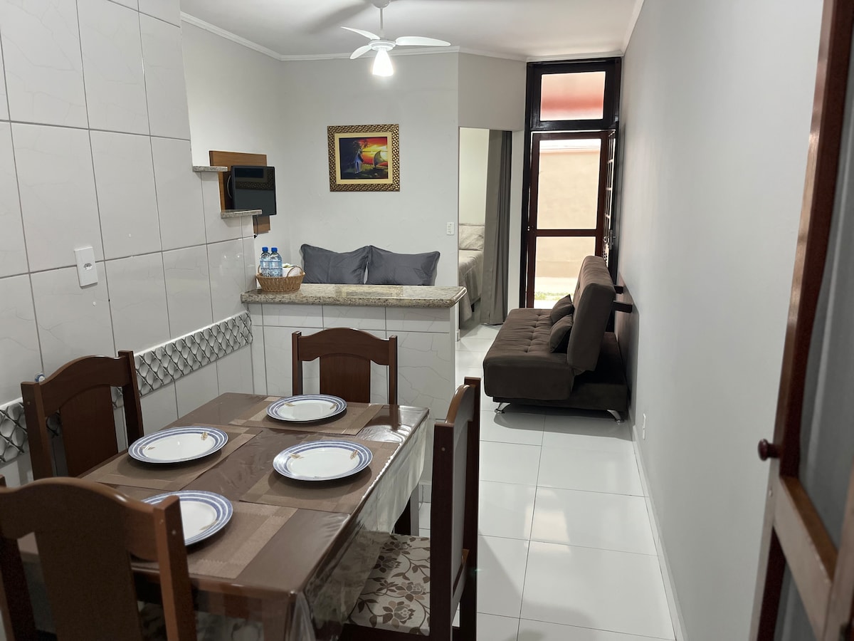 ¡Apartamento con estructura para su oficina en casa! Apartamento acogedor, moderno y con vistas al mar. Ofrecemos un espacio de oficina en casa, con internet de alta velocidad que te permite trabajar y al mismo tiempo disfrutar del clima de playa. Estamos en el último piso, bien ventilado e iluminado. Apartamento totalmente equipado con la infraestructura necesaria para su bienestar "cocina completa y 1 habitación con aire acondicionado, 2 balcones con vista al mar/montaña. Nuestro voltaje de energía es de 220V