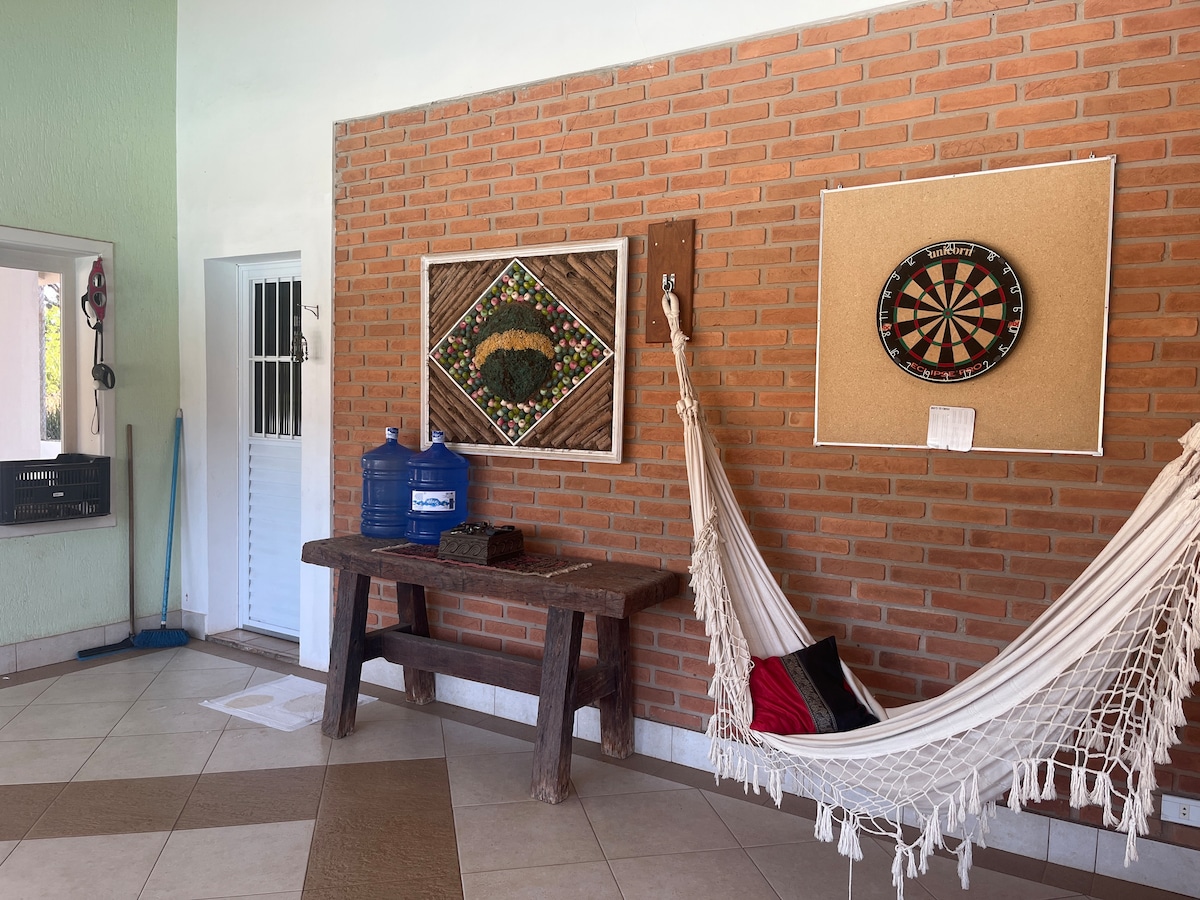 ¡Relájate y disfruta de momentos inolvidables con tu familia y amigos! Alójate en una encantadora casa de campo en el condominio Vale das Laranjeiras en Indaiatuba, a solo 10 minutos del centro de la ciudad. Aprovechar el clima agradable para disfrutar de la piscina y preparar una deliciosa barbacoa. Disfruta de total privacidad, seguridad y tranquilidad, rodeado de naturaleza, sin dejar de tener la comodidad de excelentes restaurantes y bares a pocos minutos.