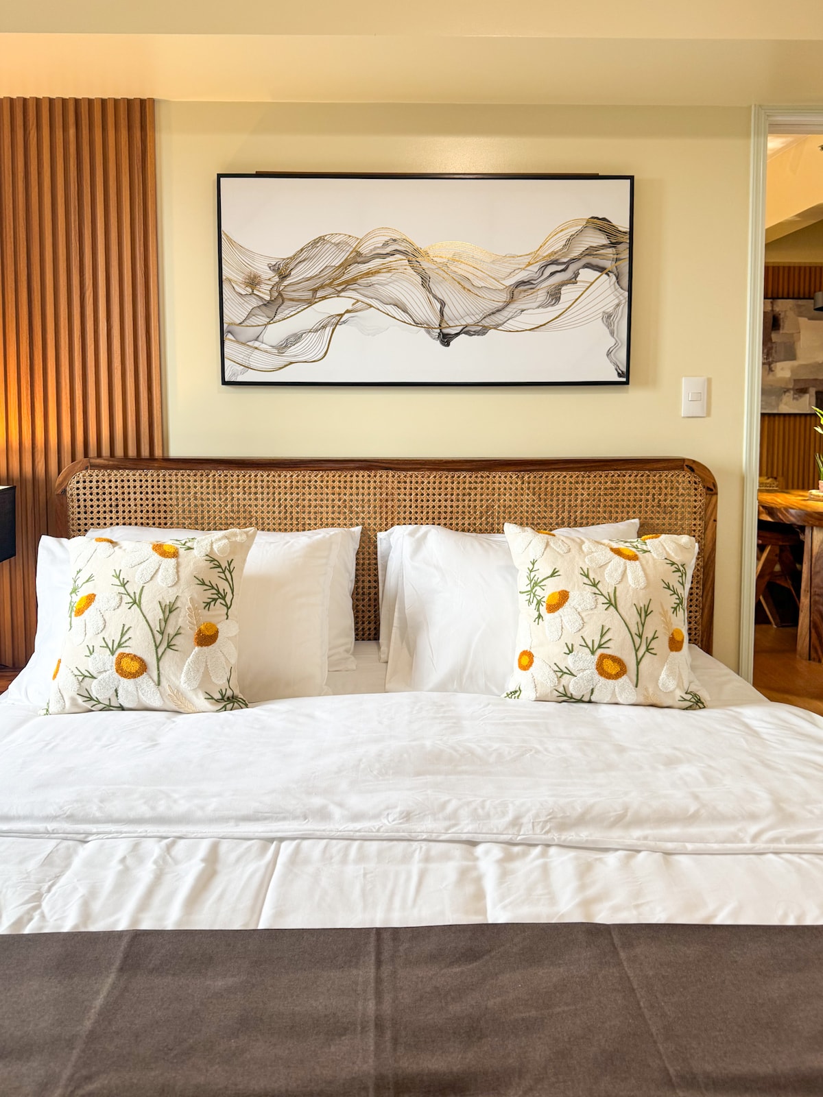 Tu suite 7 en el Hotel Casiana Residences Tagaytay, una de nuestras 11 unidades ubicadas en el mismo edificio. Relájate en esta espaciosa suite de 40 metros cuadrados con un interior de lujo y muebles de primer nivel. Decorado con buen gusto, ambiente acogedor y completo con todos los servicios que necesitas para una estancia cómoda y relajante. Disfruta de una experiencia de lujo asequible con los servicios compartidos del hotel, como piscina climatizada, gimnasio de última generación, área de juegos para niños, carrusel, spa, restaurante y cafetería, bar en la piscina y estacionamiento gratuito.