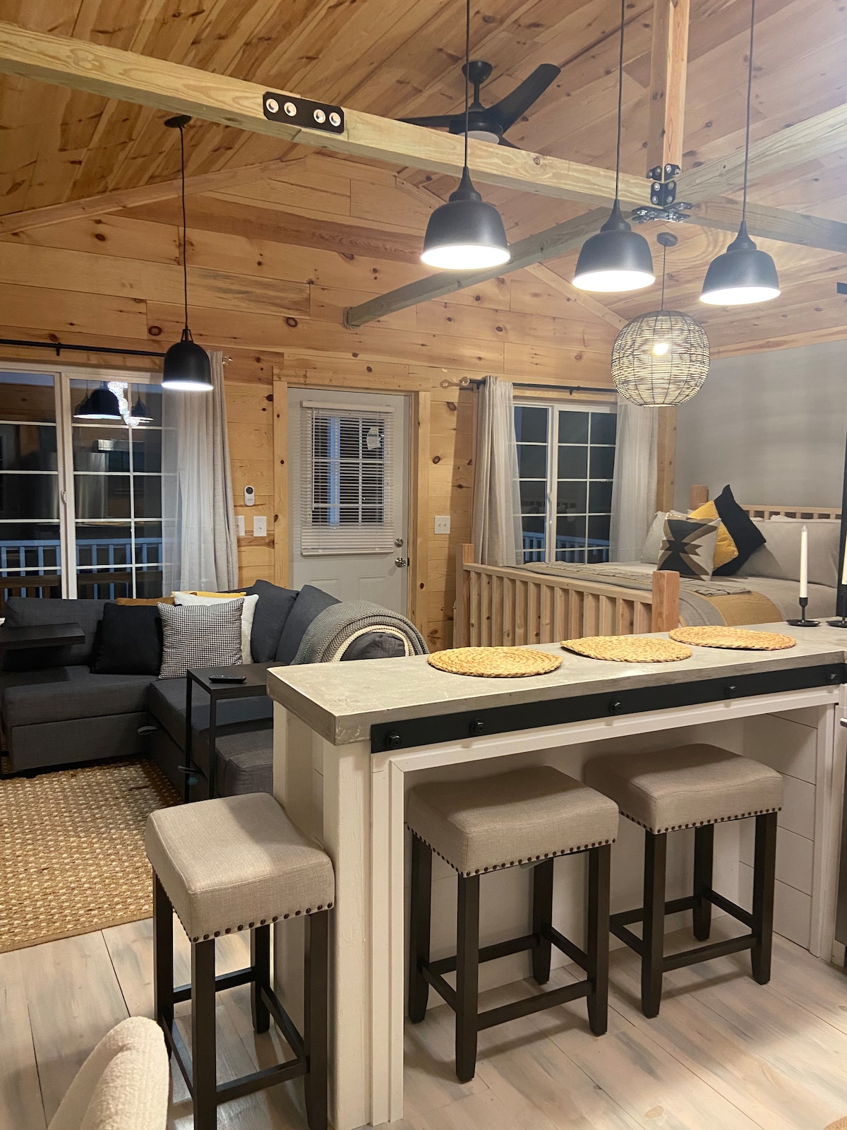 Disfruta de esta cabaña con vistas a la costa del lago MI. Conecta con la naturaleza rodeada por el bosque Hiawatha y la increíble vida silvestre. La planta abierta y el diseño artístico crean un ambiente acogedor. Capacidad para 4 personas en el dormitorio loft y 1 en el sofá de abajo. Cocina totalmente equipada y calefacción por suelo radiante. Incluye lavadora y secadora. El ambiente acogedor de este lugar tranquilo te inspirará a regresar año tras año. Esta cabaña forma parte de Wood Haven Estate. ***Acceso limitado al lago debido a los bajos niveles de agua.