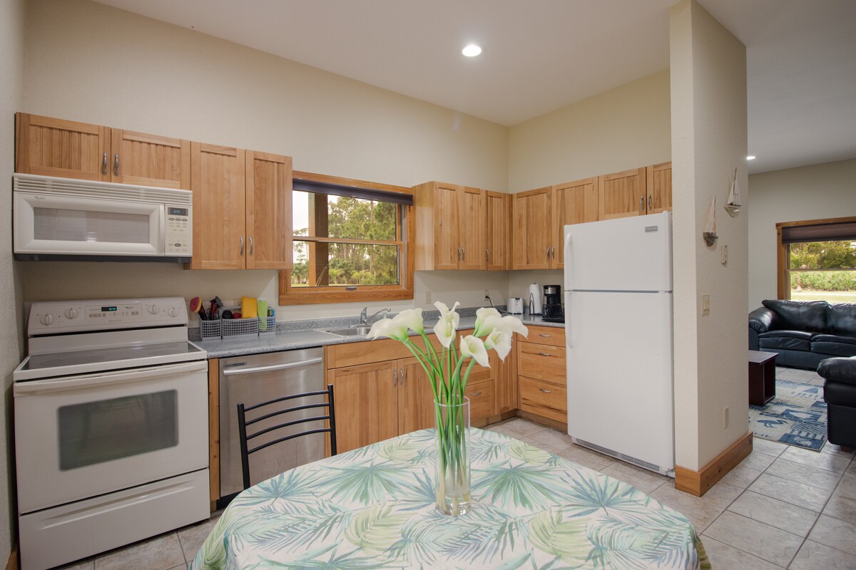 Relax with the family in this peaceful getaway. Enjoy the entire unit with private access, featuring 1 bedroom with king bed and 1 bathroom with essentials. Sofa in living room is a queen-size sofa bed, and the fully equipped kitchen includes dishes for four. You’ll also have your own washer and dryer, plus access to the shared pool. The owners’ residence is located on the same property. The property is just 7 miles from the beach, with plenty of restaurants, shops, and attractions nearby!