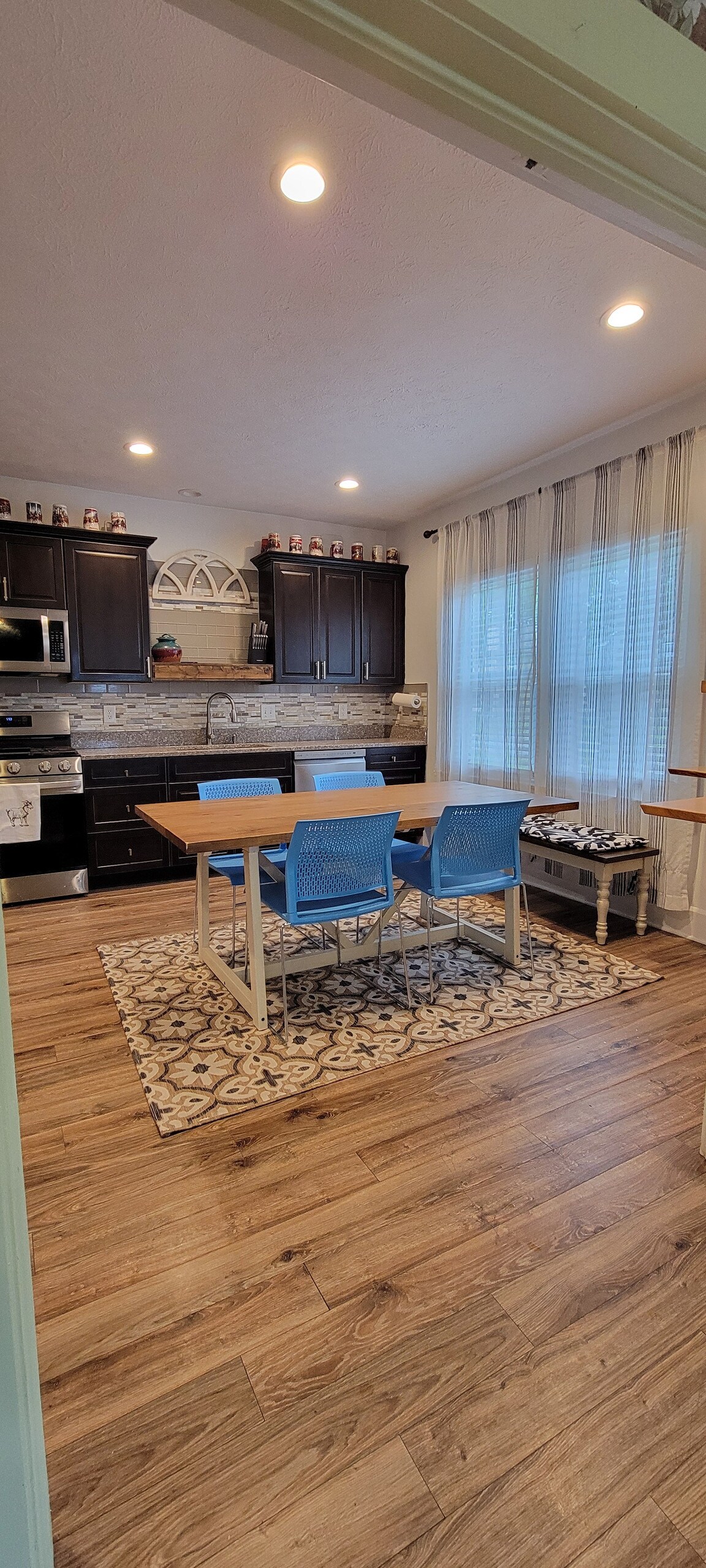 Feel at home in this charming 2 bed/1 bath bungalow in a quiet, historic neighborhood! The property features refinished hardwood floors, comfortable furnishings, thoughtful decor and updated fixtures in the bathroom. A modern kitchen offers new appliances, the essentials for cooking, a charging station, and a coffee bar with snacks. Retreat to the spacious fenced in yard and lounge on the patio. History is important to us so we updated the space while staying true the original character & feel.