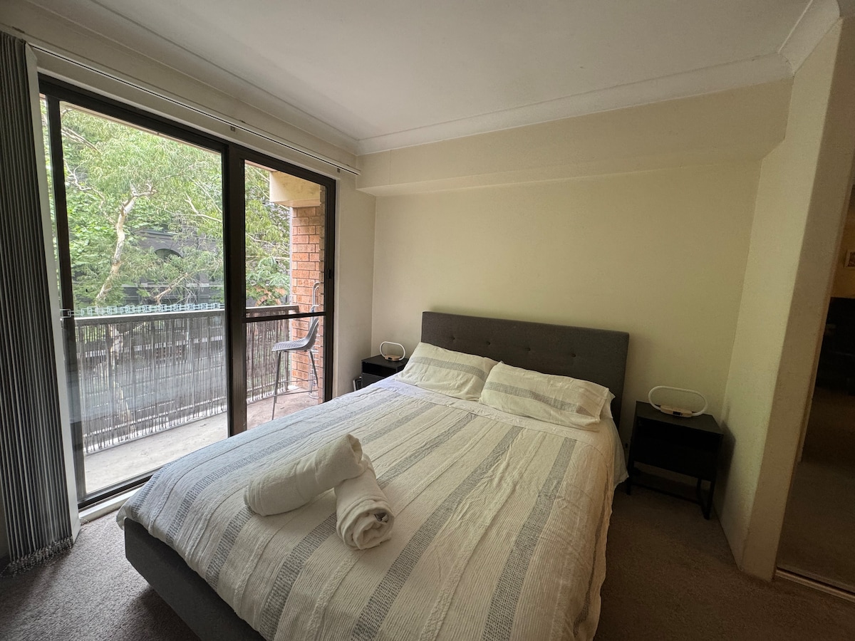 Superb northerly views from private balcony/bedrooms. Secure, top (8th) floor, lift. Fully furnished, wifi, all mod cons in kitchen/laundry, built-in wardrobes. 5km to CBD. Plentiful unrestricted parking. Wide tree-lined street. Quiet, trendy, up-market, established neighbourhood. 1 block to Victoria Hotel=spectacular dining & locals atmosphere. 4 min walk to Annandale shops/busses/cafes. 6 min walk to Parramatta Road busses. 1km to Stanmore train station. 2 night min, but 6 nights for Xmas/NYE.