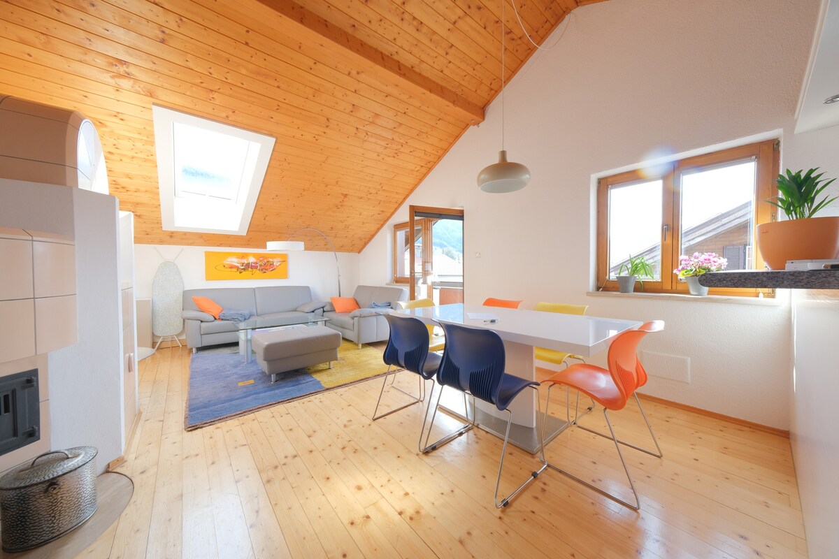 La comodidad, la amplitud de la luminosidad del ambiente, un entorno tranquilo y relajante en medio de un jardín llamativo, las impresionantes vistas panorámicas y la creatividad y la originalidad caracterizan este alojamiento. La mansarda de 45 m², que forma parte de un apartamento dúplex, es el refugio perfecto después de un día lleno de eventos en las montañas, en las pistas de esquí o después de una estancia en los acogedores pubs y lugares culturales de la ciudad alpina de Innsbruck.