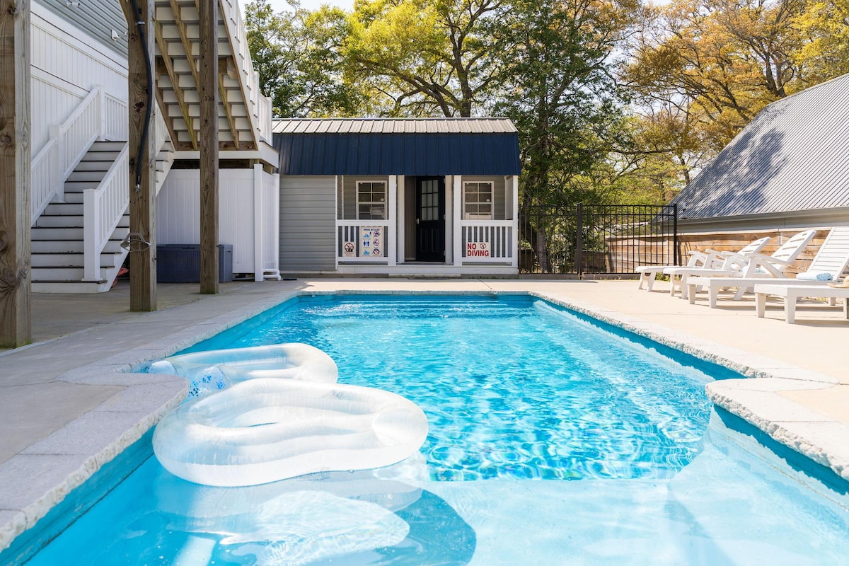 Welcome to the Waterfront Coastal Cabin nestled on a secluded tidal creek leading to the Intracoastal Waterway. Capture breathtaking views on the private dock nature watching, fishing, or relaxing on the hammock nearby. This coastal retreat is the perfect getaway for you and your family/friends to create endless memories by the fire pit, oyster roast, outdoor bar, and game room. We're located: -400ft: Private boat ramp -7mi: Wrightsville Beach -11mi: Downtown Wilmington -5mi: Ogden Park