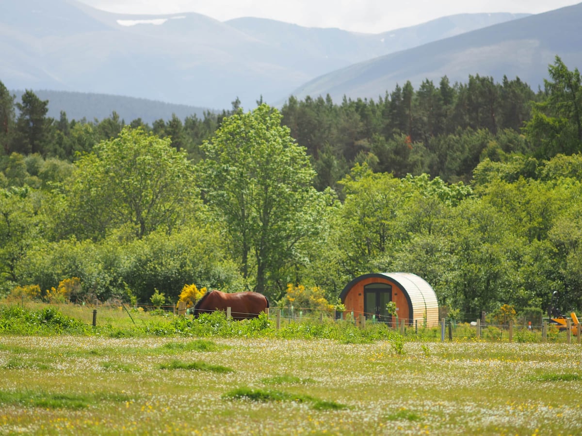 Dos grandes albergues glamping ubicados en el corazón del Parque Nacional de Cairngorm en una granja de caballos de trabajo. Cada uno cuenta con una cocina-comedor-sala de estar de planta abierta, un dormitorio separado con cama doble con colchón Emma (nuevo, julio de 2024) y un baño con ducha eléctrica. Hay una hermosa terraza donde puedes tomar una copa de vino con vistas a los caballos y al campo de Strathspey. Se proporcionan todas las sábanas y toallas para que tus vacaciones comiencen sin estrés.