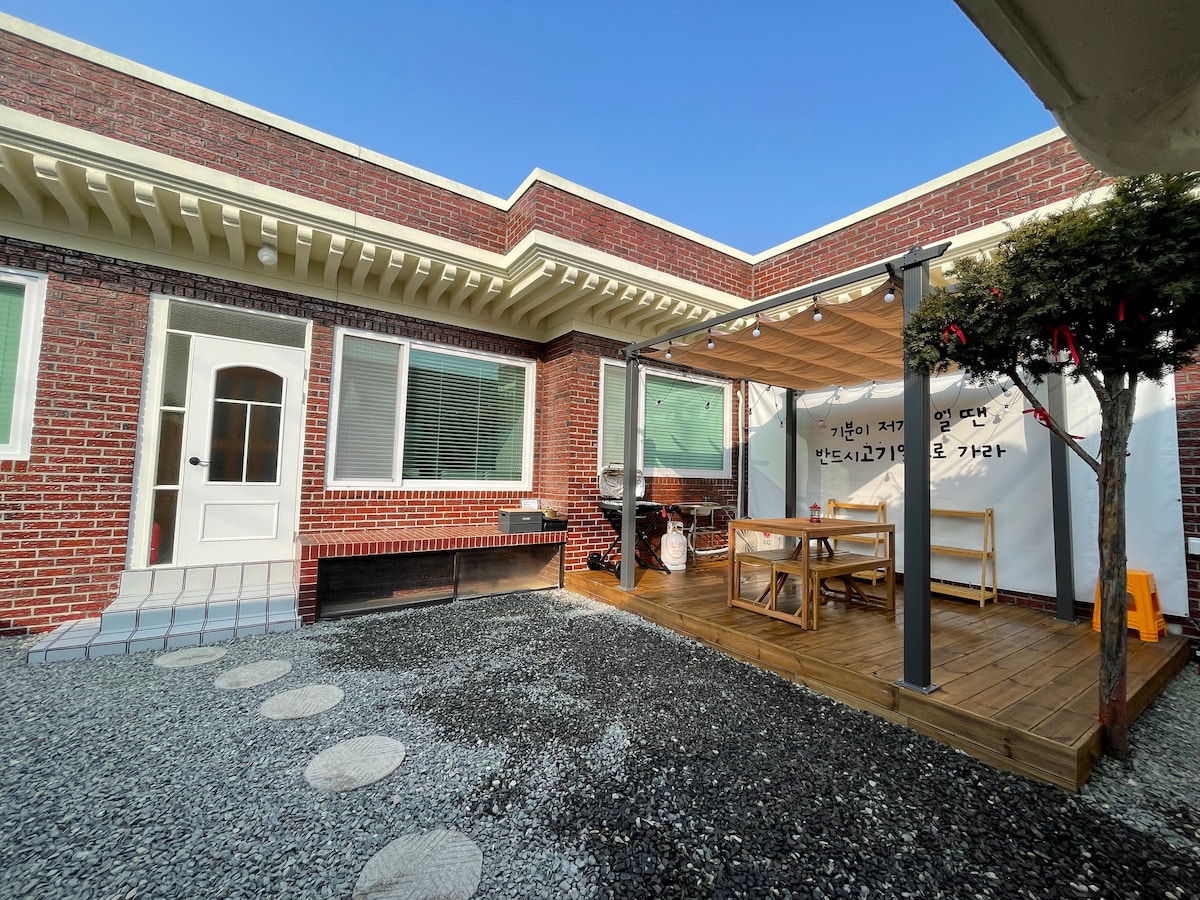 독채/마당있는집/황리단길/황오동중심/마당•바베큐그릴/10명단체/침대6개/온돌1/집앞무료주차