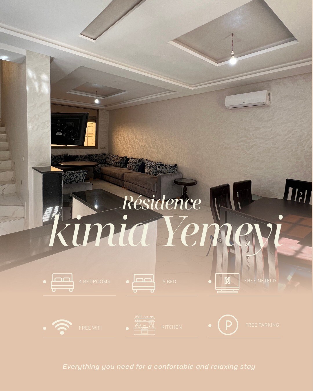 "Découvrez notre appartement familial situé à proximité de l'aéroport Agadir Al Massira, à seulement 5 minutes à pied. Un séjour pratique et agréable vous attend !" "Relax in our Family-Friendly Apartment, just 5 minutes from Agadir Airport" "استرخ في شقتنا العائلية المريحة، على بعد 5 دقائق من مطار أكادير"
