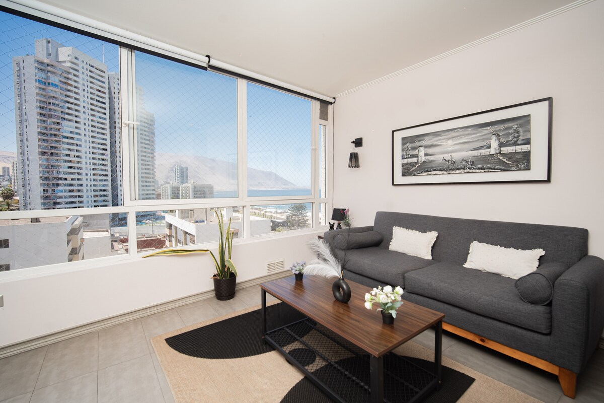 ¡Vive la experiencia única de Iquique desde este moderno departamento a pasos de Playa Brava! Despierta cada mañana con una vista privilegiada y relájate en la terraza mientras disfrutas del atardecer frente al mar. Ubicación céntrica, rodeada de restaurantes, cafeterías y atractivos turísticos, ideal tanto para turistas como para viajeros de negocios.