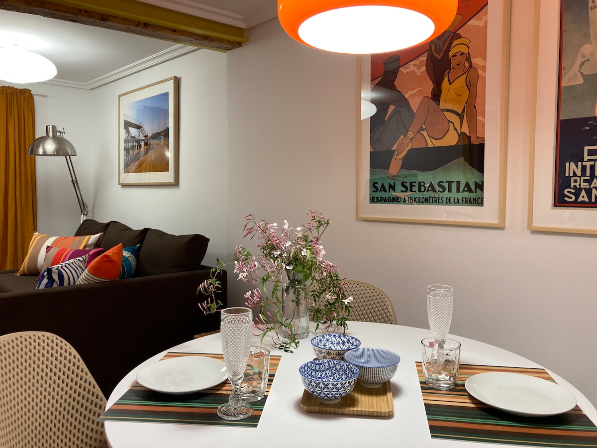 De estilo urbano y acogedor, este nuevo apartamento de un dormitorio con cama kingsize y sofá cama (144x180cm)se encuentra en el corazón del barrio de Gros, a 1 minuto a pie del centro de la ciudad Impecablemente recién reformado cuenta con aire acondicionado, televisión 55", Wifi, Nesspreso. Completamente equipado para niños y bebés. Perfectamente ubicado a 2 minutos de la estación de autobuses y de trenes, así como al lado de una parada directa de autobús para el aeropuerto de San Sebastián.