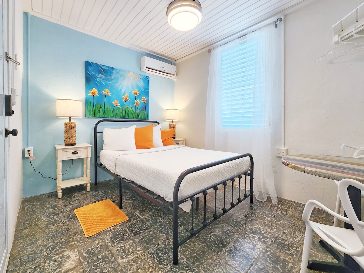 Kokomo Culebra es una encantadora casa de huéspedes en Culebra, Puerto Rico, que ofrece habitaciones acogedoras con decoración costera. La habitación 3 es una amplia habitación queen con mucha luz natural que se abre a la terraza del segundo piso.