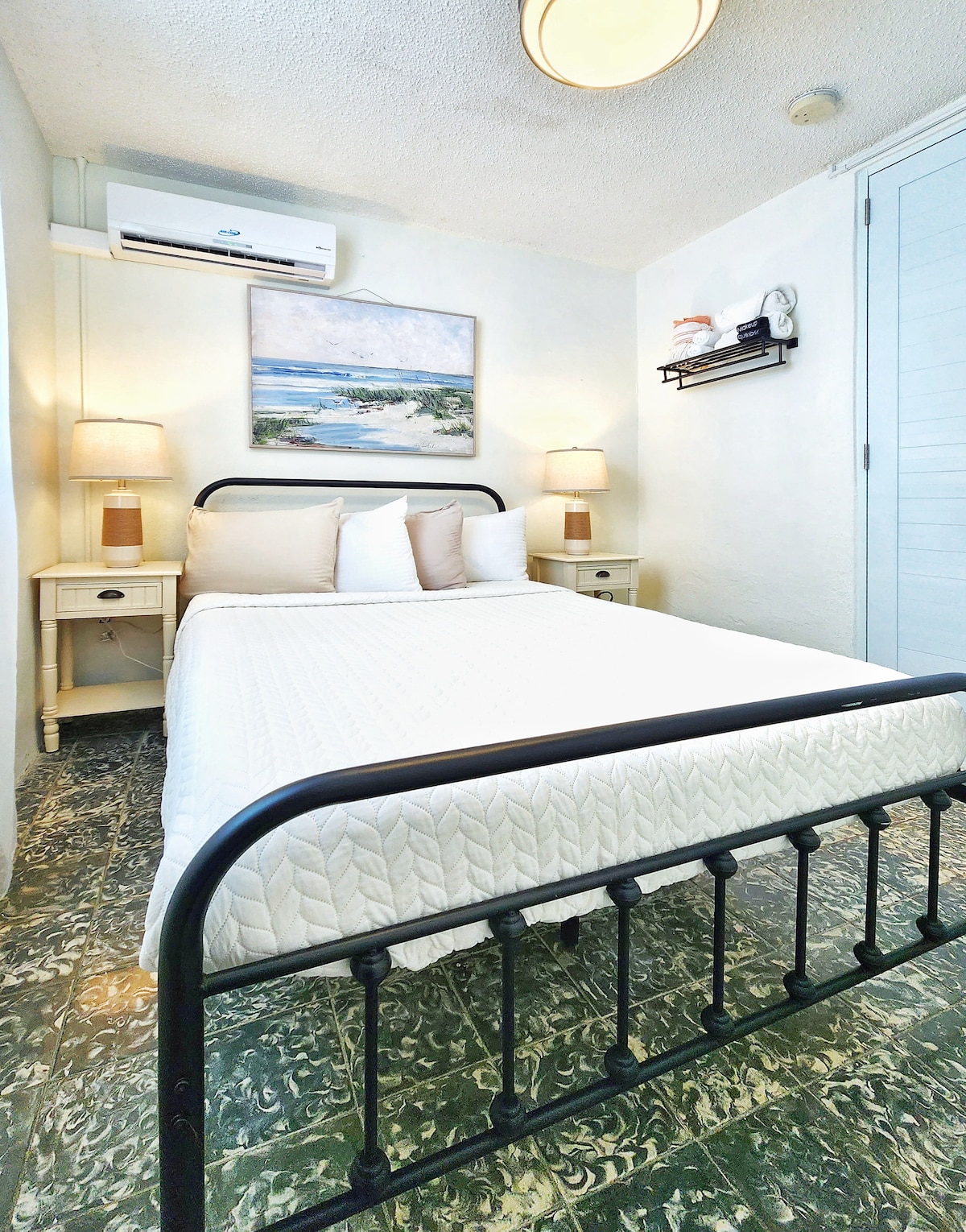 Kokomo Culebra es una encantadora casa de huéspedes en Culebra, Puerto Rico, que ofrece habitaciones acogedoras con decoración costera. La habitación 2 es una habitación grande para 3 personas con una cama queen y una cama individual. Una mesa pequeña con sillas, mesitas de luz, una cómoda y un baño completo en suite completan la habitación.
