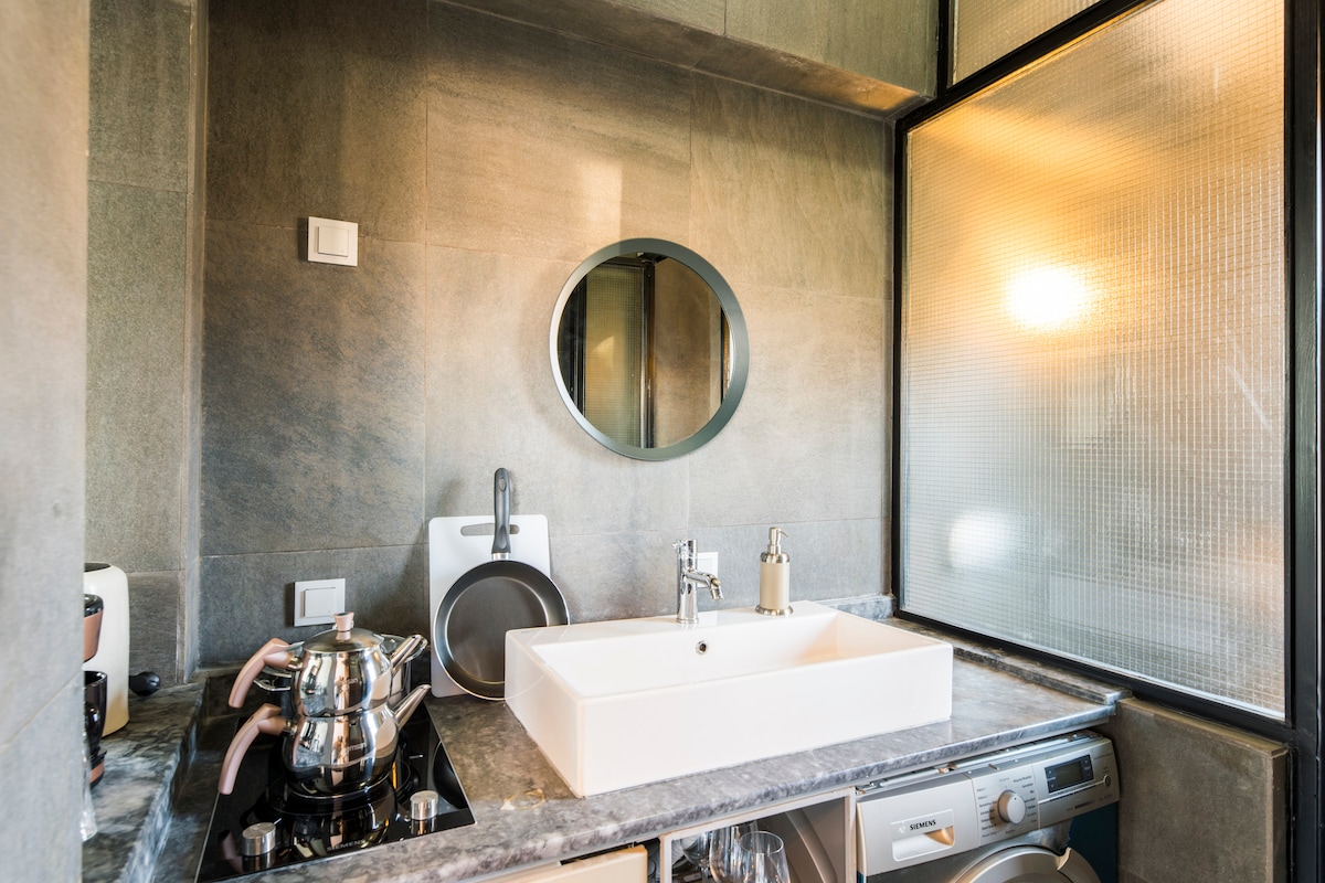 Esta es nuestra casa. Nos encanta. Nos preocupamos por ello, también nos preocupamos por el sentido del espacio y la calidad del tiempo. Esperamos que tú también. Este alojamiento de 160 m2 con techos altos y 1 dormitorio está situado en el 4º piso de un edificio histórico semirresidencial. Aunque nos encanta pensar que el lugar está lleno de paz, comodidad y personalidad, la verdadera magia del mismo es exactamente donde se encuentra. Está a solo un minuto de los transbordadores y, de alguna manera, se encuentra en medio del bullicio de Kadikoy.