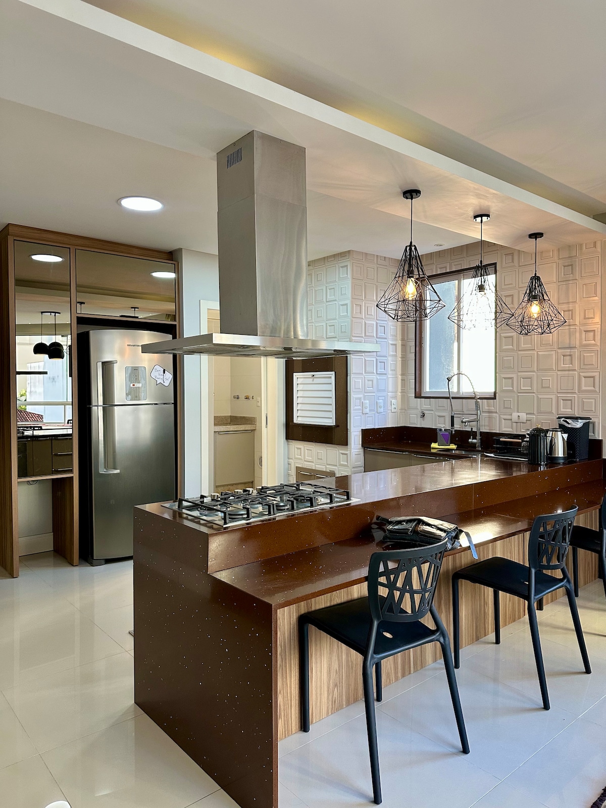 - Apartamento de 176,5 m² en planta alta. - A 150 pies de la playa y de la noria. - 3 suites temáticas, cada una con televisores inteligentes y espacio de oficina en casa. - Cocina totalmente equipada. - Espacio gourmet con barbacoa de carbón y nevera de cerveza. - Cuarto de lavado con secadora y lavadora. - 3 plazas de aparcamiento. - Servicio diario de limpieza por la mañana de lunes a viernes (excepto festivos). - Aire acondicionado, wifi superrápido y sonido envolvente Bluetooth.