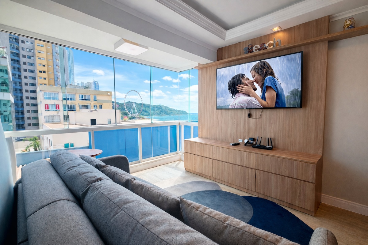 Disfruta de lo mejor de la ciudad desde este departamento con un gran balcón, que ofrece espectaculares vistas panorámicas del mar, lleno de comodidades, cómodo, con aire acondicionado, seguro y cerca de la mejor ubicación en Barra Norte: ¡solo cruza la calle para estar en la playa y la noria! ¡Da un paseo corto hasta la playa, al otro lado de la calle, y en el camino de regreso sumérgete en la piscina! ¡Es el lugar ideal para una escapada!
