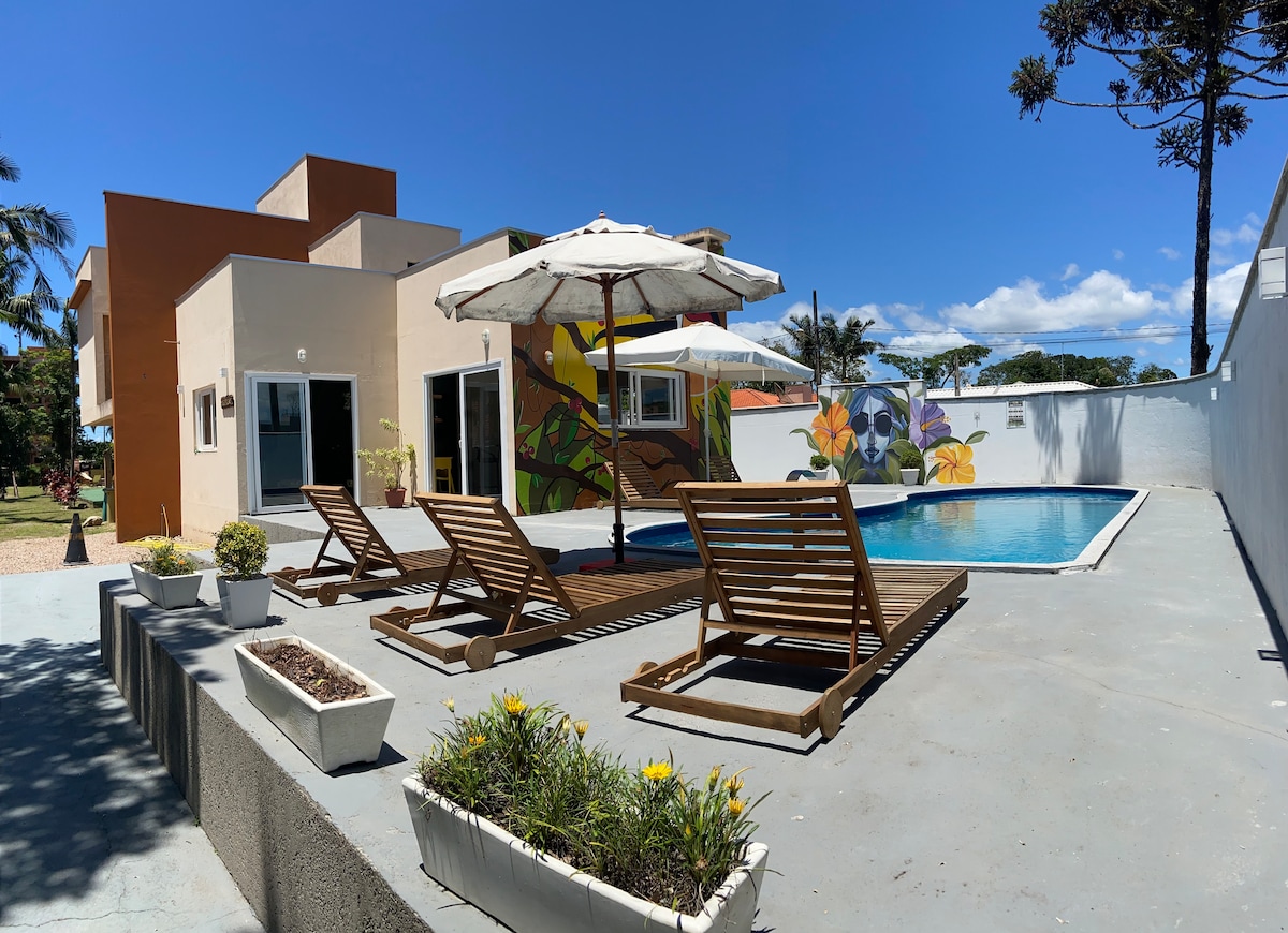 Você vai adorar a natureza ao redor da pousada e a paz que esse local proporciona. Na segunda quadra do mar, em Itapoá/SC, menos de 5 minutos você estará com os pés na areia, curtindo o momento mais tranquilo do seu ano. Ou então, desfrutará da nossa área de piscina que possui tratamento salino constante, não agredirá sua pele ou cabelo. Poderá observar os passarinhos que colorem o jardim desfrutando do café da manhã e ao final do dia, um churrasco com a família ou amigos.