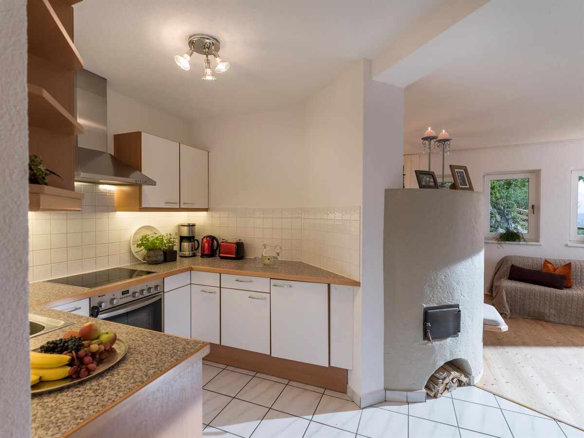 Situado a las afueras de un pueblo de montaña del Tirol, este lugar le ofrece una vista maravillosa y amplia. El apartamento, que combina amorosamente tradición y modernidad, te permitirá calmarte y recargar pilas al instante. Un teleférico cercano le permite practicar todo tipo de deportes de montaña en verano e invierno. Sin embargo, incluso aquellos que simplemente "se queden y se relajen" se sentirán como en casa. WIFI, TV, cajas BT, espacio de estacionamiento están disponibles de forma gratuita; para la sauna tomamos una pequeña feey. La cocina está bien equipada .