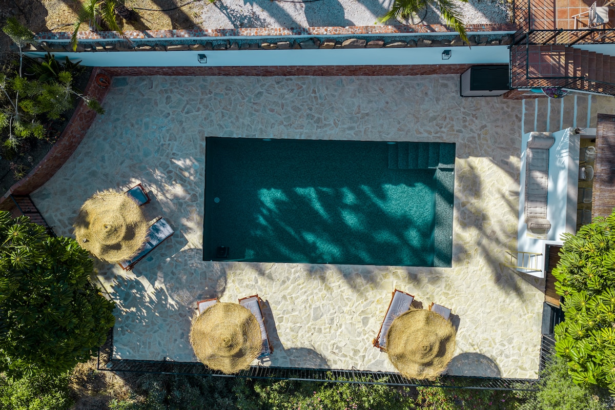 Tu lugar para el alma en Andalucía Un refugio idílico entre las montañas y el mar Disfruta de la piscina infinita, el gimnasio al aire libre, la terraza y un amplio jardín, perfecto para relajarte y recargar energías. Enclavado en un tranquilo entorno natural, podrás llegar a pintorescos pueblos blancos de montaña y a la playa en solo 20 minutos. De noviembre a marzo: el lugar perfecto para trabajar Ya sea para un año sabático o para teletrabajar, inspírate con unas vistas impresionantes y una conexión wifi rápida.