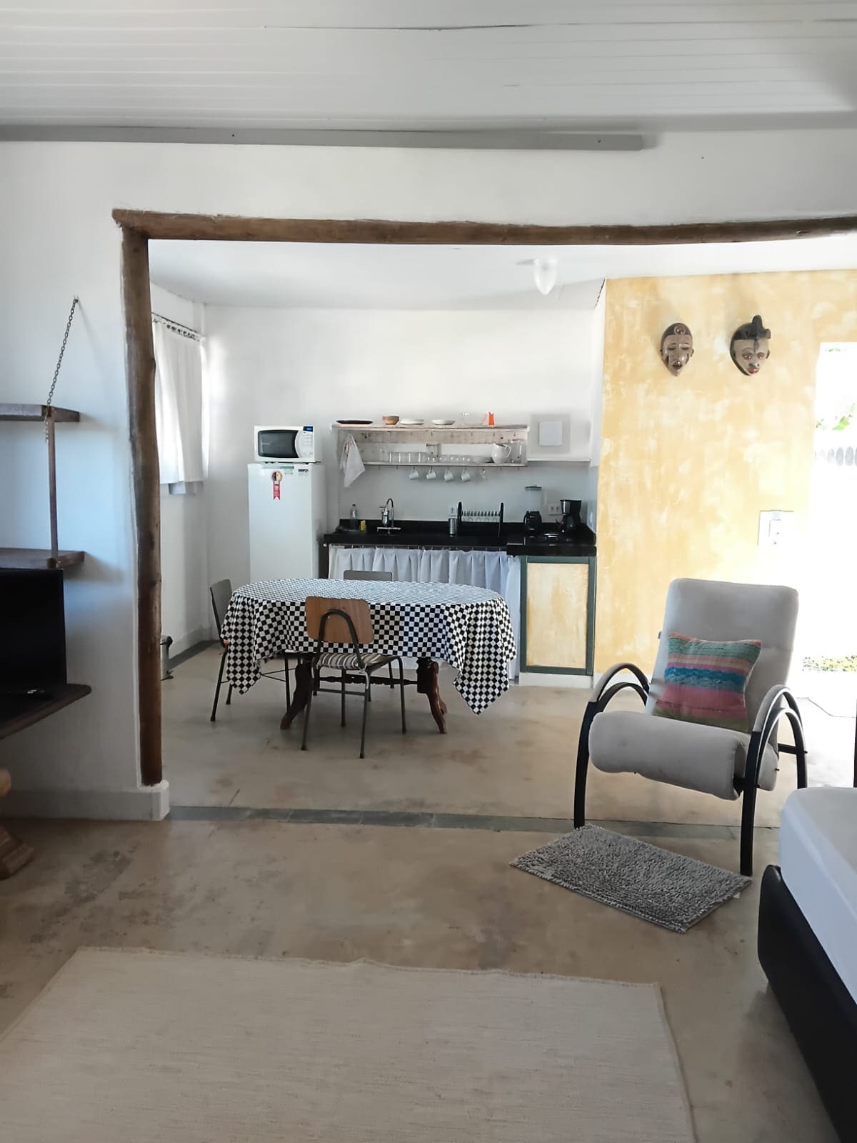 Acogedora suite, recién inaugurada, frente al mar. Situado en la playa de Pontal, a 4 minutos a pie del centro histórico. Internet de fibra óptica, Wi-Fi de gran alcance en todo el entorno. Cocina equipada con cafetera, hervidor eléctrico y minibar. Excelente baño, agua a presión y ducha de gas. Aire acondicionado. Cama de matrimonio queen, colchón ortobom línea hotelera. Decoración auténtica en cada habitación, con arte indígena de pueblos de diferentes regiones de Brasil. - suite en la planta baja -