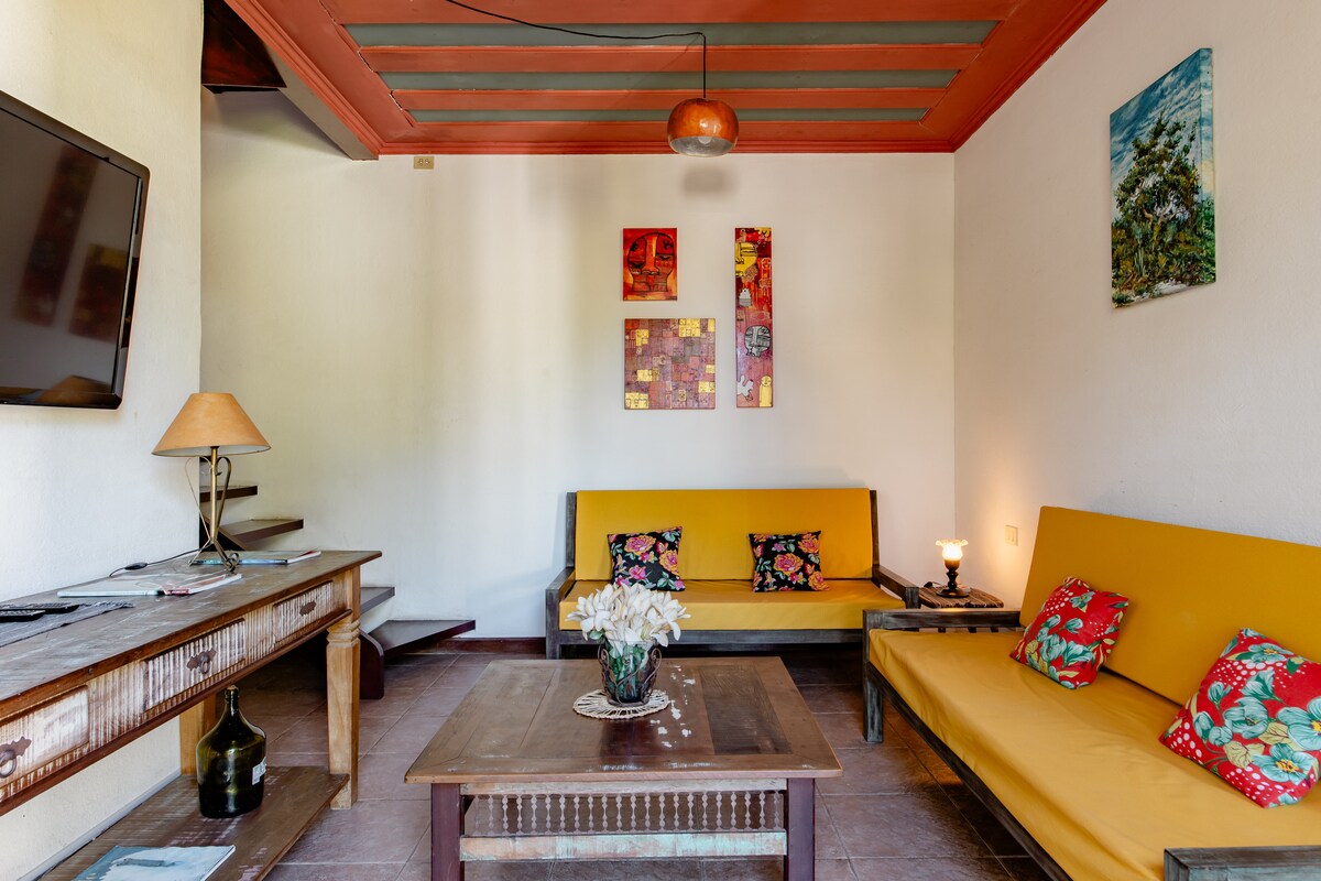 A solo 50 metros de la arena, Casa Garibaldi fue creada a partir de la unión de artistas locales de Paraty. Con una decoración de buen gusto, cada rincón inspira belleza y creatividad. ☀️ Vista inolvidable: despertate temprano y disfrutá del amanecer con una vista impresionante del mar. 🛏 Comodidad moderna: aire acondicionado nuevo (dic/2024) y dos routers Wi-Fi independientes que mejoran la conexión. Baño 🌿 revitalizante: en la ducha, las ramas de eucalipto actúan como un difusor natural, aportando frescura y una sensación de spa.