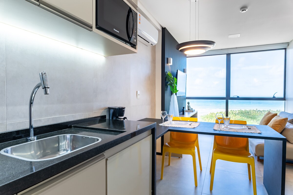 ¡Hermosa 🌅 vista! ¡Piso 21, frente al mar! 🌊 🍽️ Cocina completa ❄️ Aire acondicionado 🛁 Jacuzzi | 🏊♀️ Piscina | 🍖 Barbacoa 🚗 Garaje | 🏋️ Academia | Sala 🎯 de juegos 🧺 Servicio de lavandería disponible 🥐 Desayuno opcional: ¡R$25,00 por persona! ✨ La elegancia y la serenidad definen Flat JASPE. Toneladas de texturas grises y suaves, inspiradas en la piedra preciosa💎, crean un ambiente sofisticado y relajante para tu estancia.