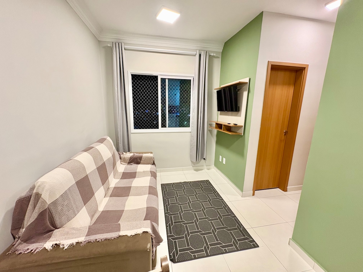 Se encuentra en el centro de São José dos Campos, junto a la CTA, el centro comercial Vale y el fácil acceso a Dutra. El departamento cuenta con: - Cocina integrada con sala de estar. - Habitación doble con cama tamaño queen, aire acondicionado y armario. - Habitación individual con cama individual y ventilador; - Sala de estar con sofá cama. El edificio tiene una piscina y un gimnasio que pueden utilizar los huéspedes y también tiene servicio de limpieza diario en el apartamento.