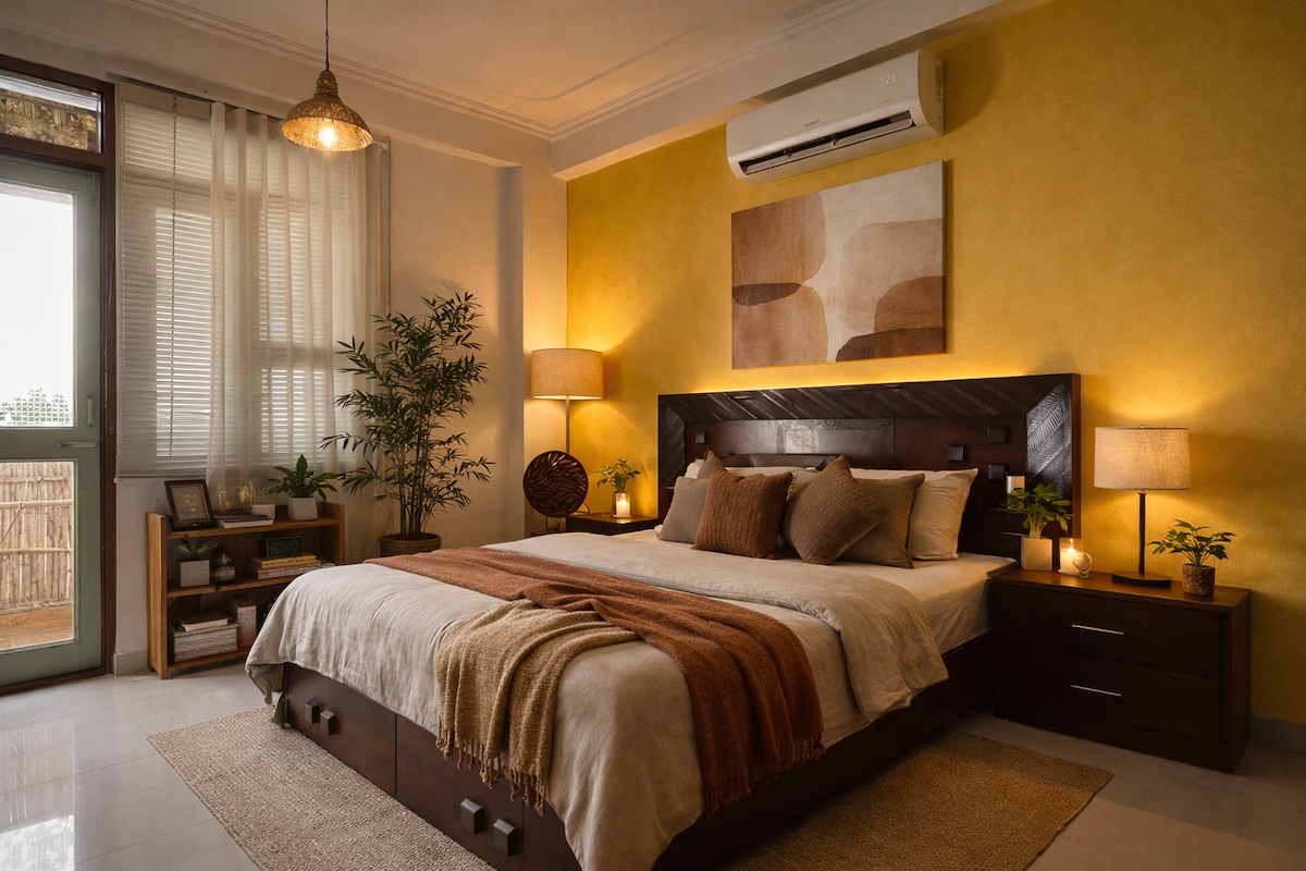 Welcome to our bohemian- modern styled Airbnb in Jaipur -- a warm, thoughtfully designed home where boho aesthetic meet modern comfort. Styled with cozy lighting, earthy textures and calm interiors, the space is designed to feel homely, relaxed and easy to settle into. Perfect for travellers, coupled, families, students, work stays & pet parents. Wether you're visiting for short getaway, work trip, or peaceful break- this home offers comfort, convenience & a cozy atmosphere.