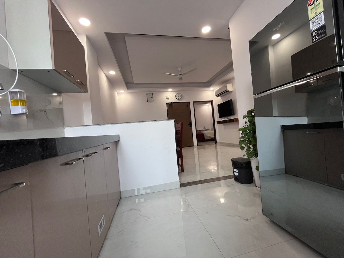 Luxurious,spacious,stylish,ventilated flat on 17th floor of a high rise building of big guarded society. Big windows of rooms&balconies with amazing view of city which looks absolutely stunning at night from 17th floor. Big gated society feels like a big hotel,huge campus,extremely secure& safe property with free parking, It gives feel of a big luxury suite of 5 star hotel, 2 bedrooms with drawing area, living area, fully equipped open kitchen(1600 sqft)