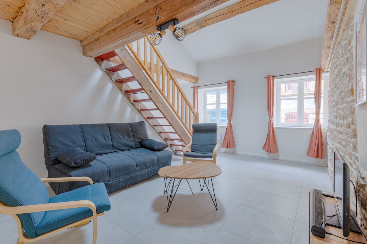 Découvrez au cœur de Cluny le charme d’un ancien hôtel particulier d’époque médiévale. Les voyageurs bénéficieront d'un accès facile à tous les sites et commodités depuis ce logement central. Pour votre bien être, nous avons conservé les éléments d’architecture typique de l’époque, en y intégrant les éléments de confort que vous attendez … cuisine ouverte équipée, ilot pour vos repas, literie grand confort, salle de bain avec douche à l’italienne ainsi que le wifi haut débit.