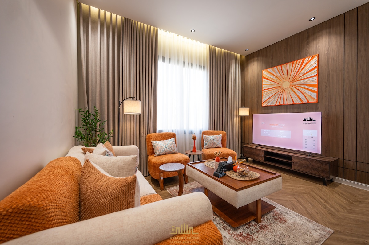 Disfrutá de una estadía lujosa y cómoda en un departamento moderno en Yeda que combina privacidad y lujo. 🛏️ Un dormitorio espacioso con una cama cómoda y decoraciones elegantes, 🛁 un baño moderno con una bañera separada y una ducha de vidrio, 🛋️ una sala de estar espaciosa para relajarse o recibir invitados. Check-in 🚪 autónomo flexible, una ubicación privilegiada cerca del parque🌳, el estadio Al Jawhara⚽, el centro comercial The Village🛍️ y la playa🌊, para una experiencia de estadía perfecta que combina comodidad y disfrute de las áreas cercanas. Nota 🔴importante: el departamento está en el segundo piso y no hay ascensor.🔴