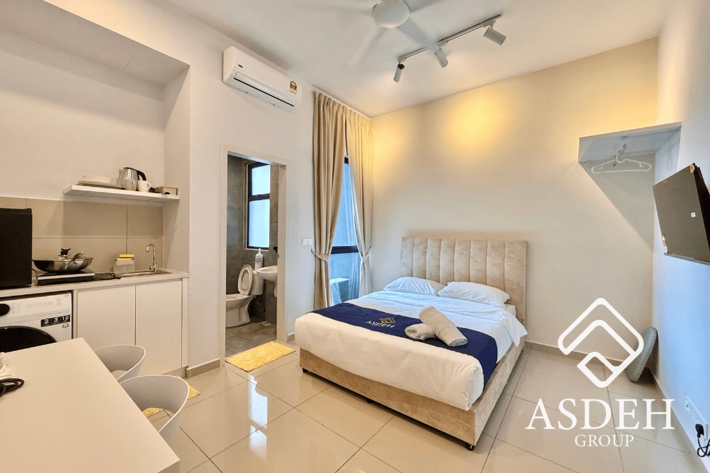 Llegada anticipada a las 9:00 a. m., salida después de la hora establecida a las 5:00 p. m. Acogedor estudio de 452 pies cuadrados con instalaciones completas. Perfecto para familias, viajeros, turistas o cualquier persona que necesite una estancia cómoda. Kiara Plaza se encuentra cerca de servicios como 24/7 Mart & Eateries. ¡Nuestra terraza de instalaciones te dejará sin aliento, especialmente un paseo durante un amanecer/atardecer perfecto! ¡Los excursionistas pueden encontrar el cercano Broga Hills paradisíaco y listo para explorar! Echa un vistazo a nuestra sección "El espacio" y "Vecindario" para obtener más información.