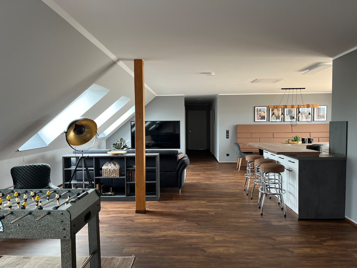 ¡🌿 El encanto industrial se une a la comodidad moderna! Te damos la bienvenida a nuestro elegante apartamento tipo estudio en una antigua fábrica de zapatos renovada en Magdeburg-Buckau. 🏡 Debe dos: ✔ Calefacción por suelo radiante y ducha de efecto lluvia ✔ Cocina totalmente equipada (lavavajillas, horno, microondas) Wifi de ✔ 120 Mbps, TV inteligente, lavadora y secadora LG A ✔ 500 m del Elba, a 3 minutos del tranvía. LA ✔ mejor ubicación cerca DE Mosquitos, Datsche Y clubes ¡🔑 Llegada sin contacto y estacionamiento gratuito!