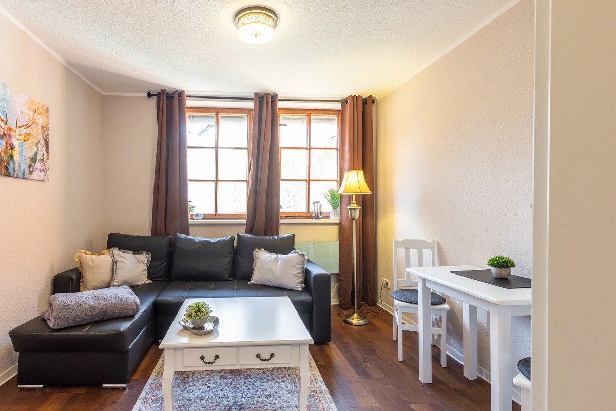 Te damos la bienvenida a Quedlinburg, Patrimonio de la Humanidad por la Unesco, este encantador apartamento para no fumadores se alquila a poca distancia del mercado, el castillo y las diversas instalaciones para conferencias. El apartamento de la planta baja fue completamente reformado a principios de 2021 exclusivamente con materiales orgánicos, como arcilla, suelo de madera real y pinturas de pared de forma natural. En total, el espacio habitable se divide en aprox. 55 metros cuadrados con 2 habitaciones. 100 Mbit/s WLAN - Mobile Work ready