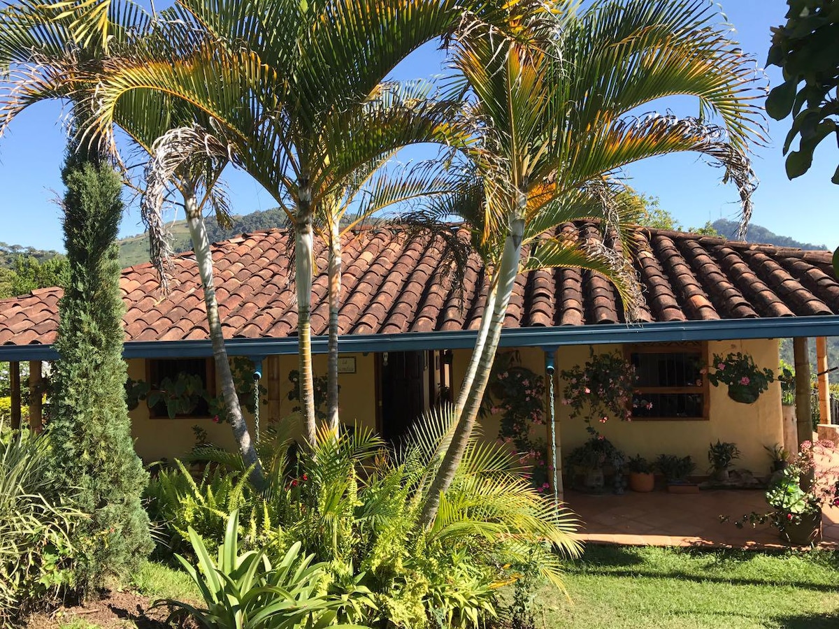Maximo 4 personas, niños hasta 10 años gratis. La casa de huéspedes está al lado de nuestra finca, donde una familia Colombo-Alemana disfruta su tiempo libre. Estamos a 1800 metros y tenemos vistas al Río Cauca y a los Andes. Las puestas de sol son impresionantes. Relajarte y disfruta de la naturaleza, caminatas comienzan en la puerta principal. Cuesta abajo hay una tiendita y una finca de café que puedes visitar(Tour). También nuestras mascotas Toby y tres gatos se alegran cuando nos visitan.