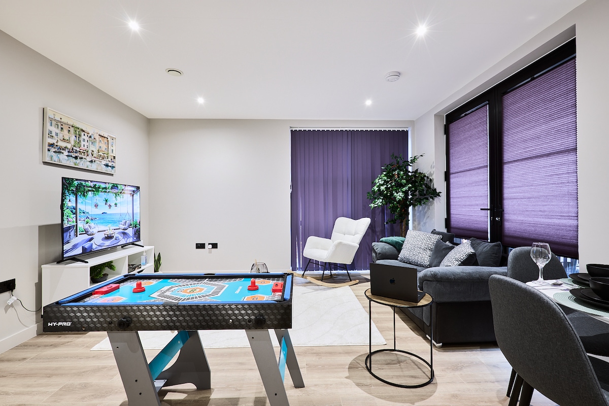 Welcome to our luxurious 2-bedroom apartment by St. Paul’s Square! This stylish retreat features spacious interiors, modern furnishings, Netflix, a foosball table, and games for fun nights in. Just a short walk from the city centre, you’ll enjoy Birmingham’s best shopping, dining, and entertainment at your doorstep. Perfect for families, friends, or business stays, with top amenities and a cozy atmosphere. NOTE : Unauthorised parties incur a £1,000 fine, plus damages, and immediate eviction.