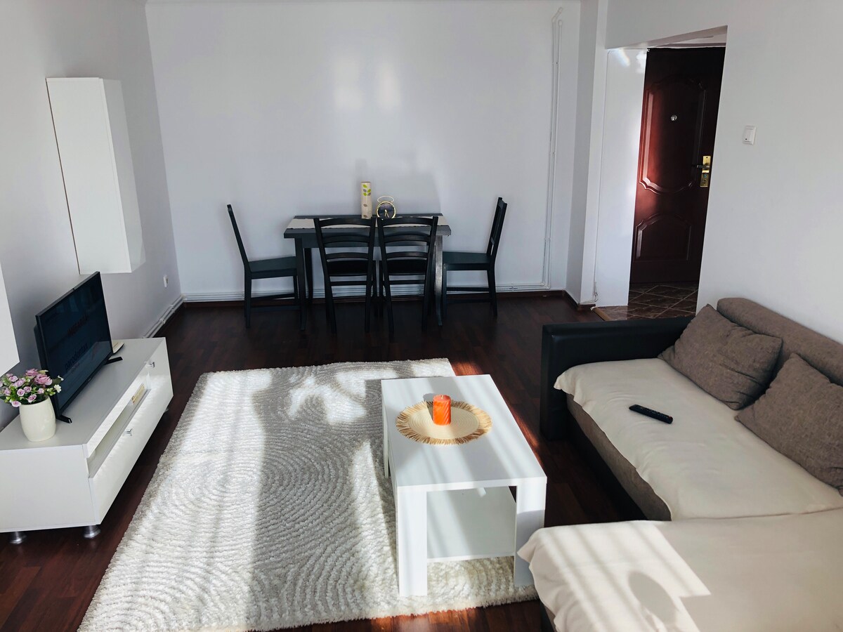 Sudio modern cu 2 camere, situat într-o zonă liniștită. Ideal pentru familie sau un cuplu, acest apartament oferă confort fiind izolat termic si fonic. - Living spațios cu canapea extensibilă, TV cu ecran plat - Dormitor cu pat matrimonial, dulap generos - Bucătărie deschisă, echipată cu aragaz, cuptor, frigider, mașină de spălat rufe - Baie modernă cu cabină de duș cu hidromasaj si radio - Proximitate față de supermarket-uri, restaurante,cafenele, parcuri,spital - Locuri de parcare cu plata