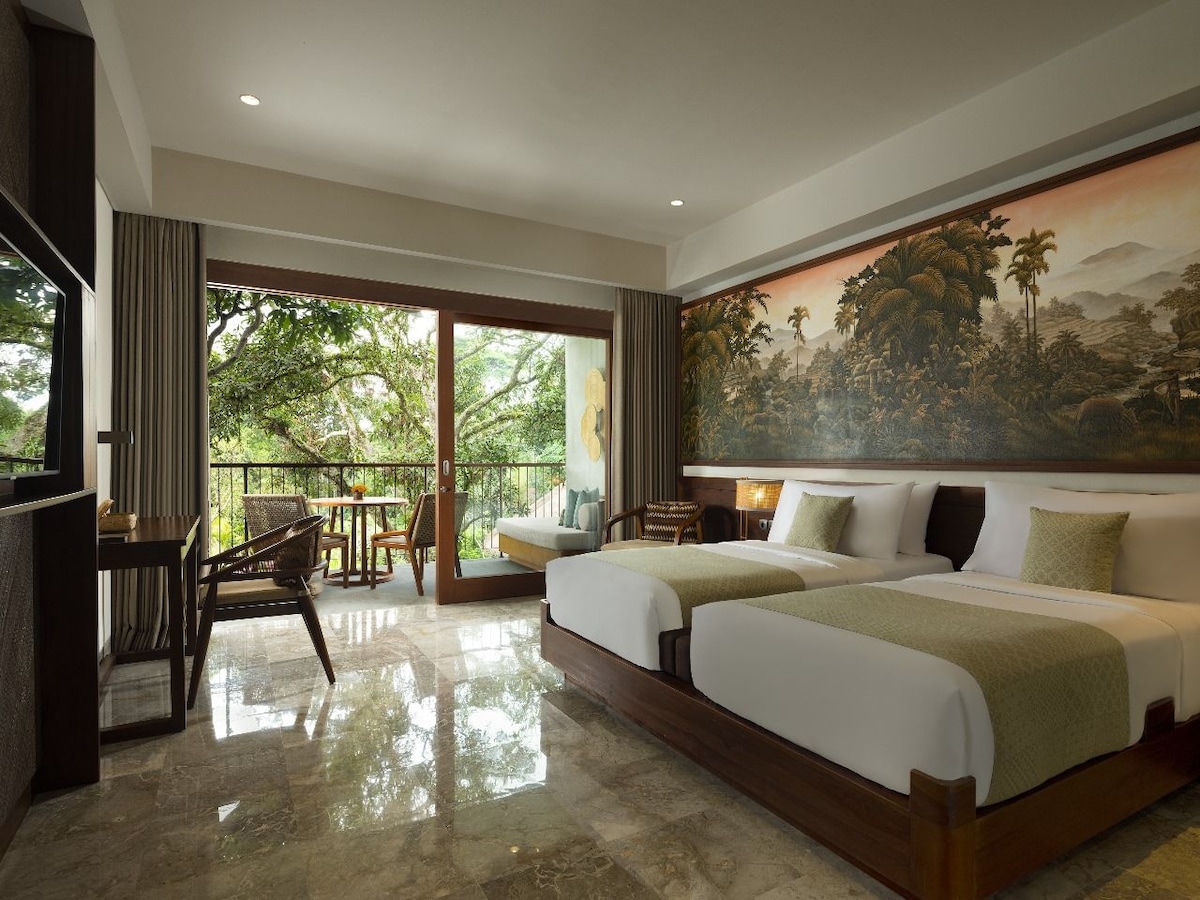 Ofrece un entorno relajante para descansar después de un ajetreado día explorando los lugares de interés de Ubud. Es una base acogedora con muebles de líneas limpias, un elegante baño en suite y una pared decorativa que muestra el legado creativo de Bali. Una terraza o balcón privado se integra a la perfección con el exterior, proporcionando espacio adicional para sentarse y relajarse.